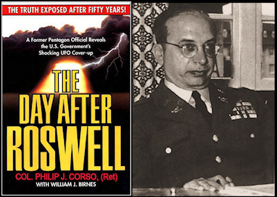Según Corso, en 1947, un grupo secreto del gobierno (probablemente el Majestic 12) fue creado bajo las órdenes del primer director de la CIA, Roscoe H. Hillenkoetter. La misión de ese grupo era de colectar informaciones sobre los extraterrestres. En paralelo, el Gobierno estadounidense negó el origen extraterrestre de los ovnis. Corso creía que la Iniciativa de Defensa Estratégica (o Star Wars), fue creada para controlar la parte electrónica de las armas de un enemigo potencial, sea terrestre o extraterrestre.